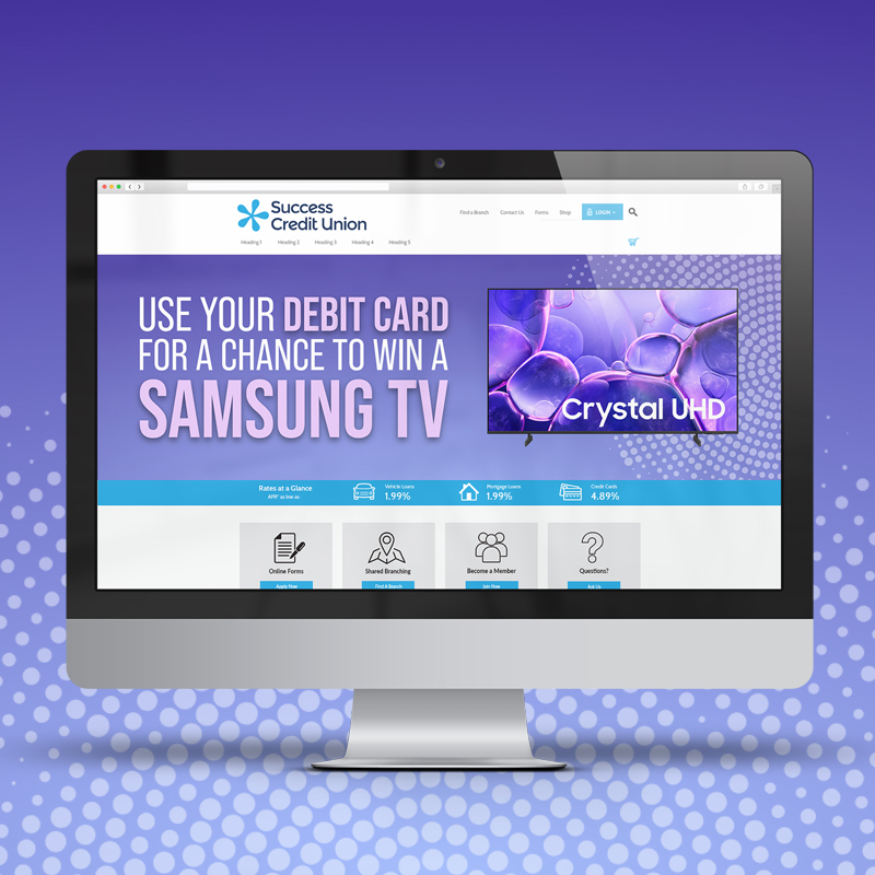 The Debit Card contest runs from April 1, 2026 – May 31, 2026 and is free for all our client credit unions. Members will be entered in to win one (1) Samsung 65” Class Crystal UHD TV every time they use their debit card with a signature-based transaction.